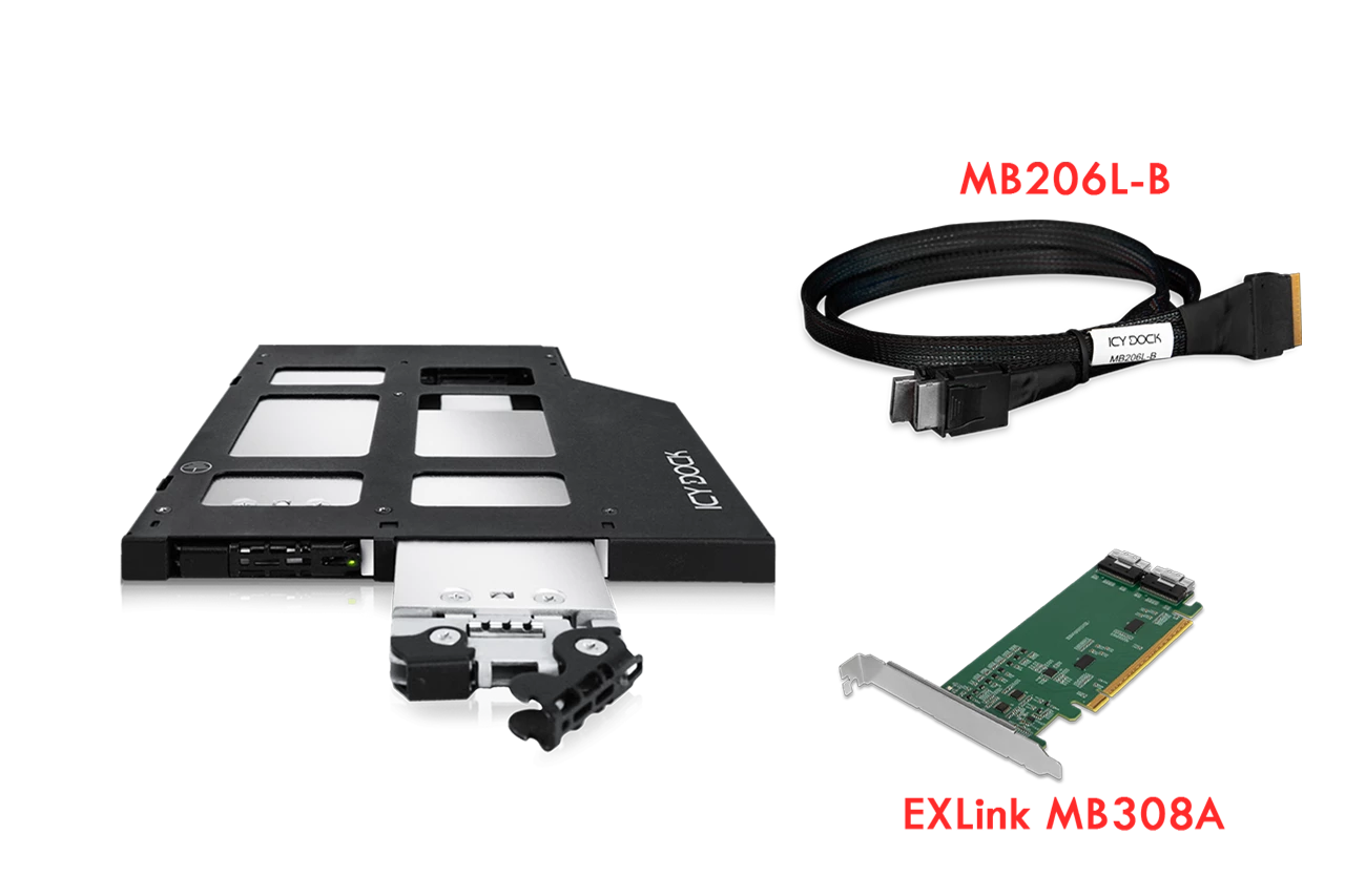 | • | Supports SATA 15-pin and OCuLink cables with locking latch design for a secure connection |