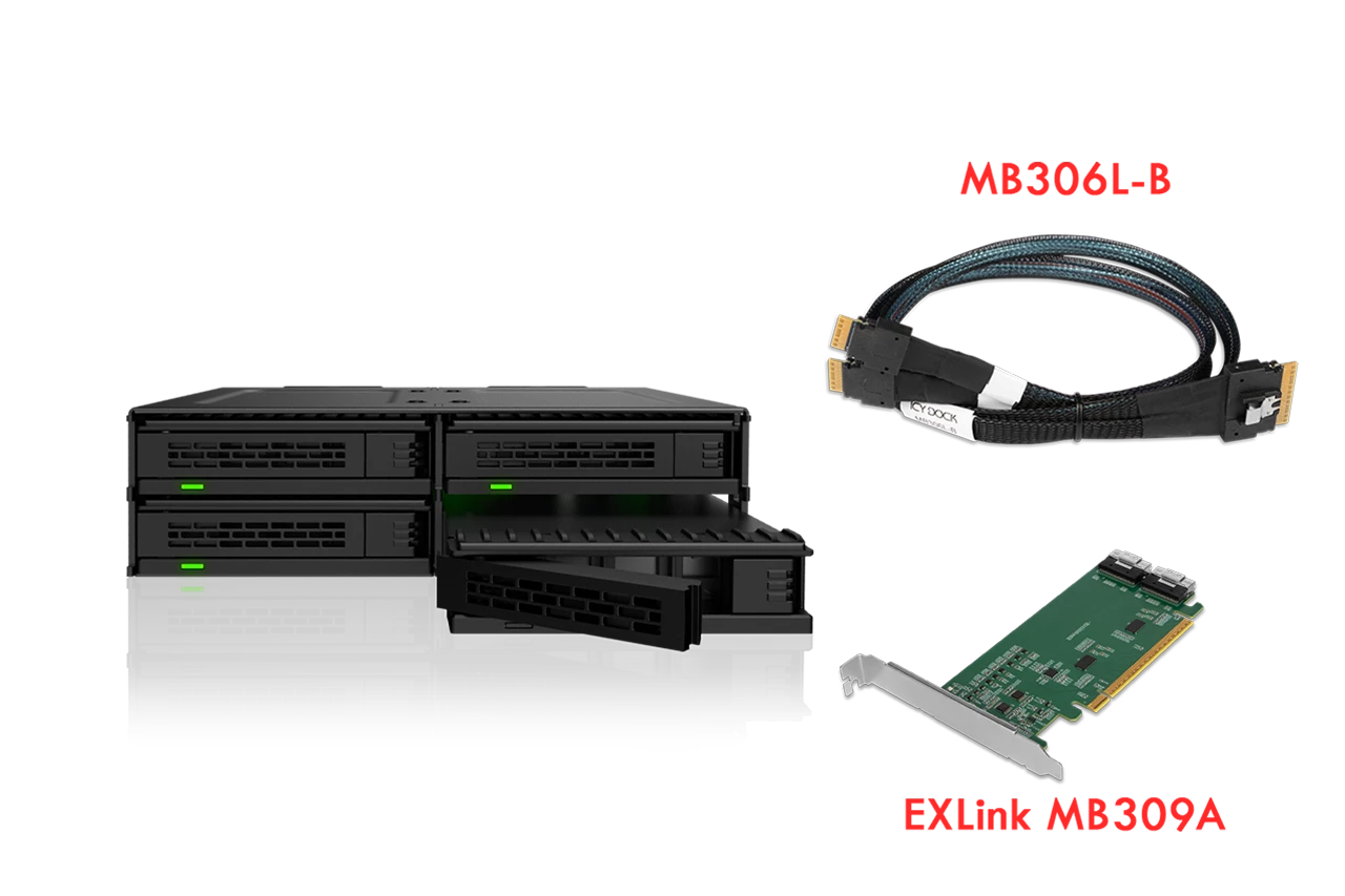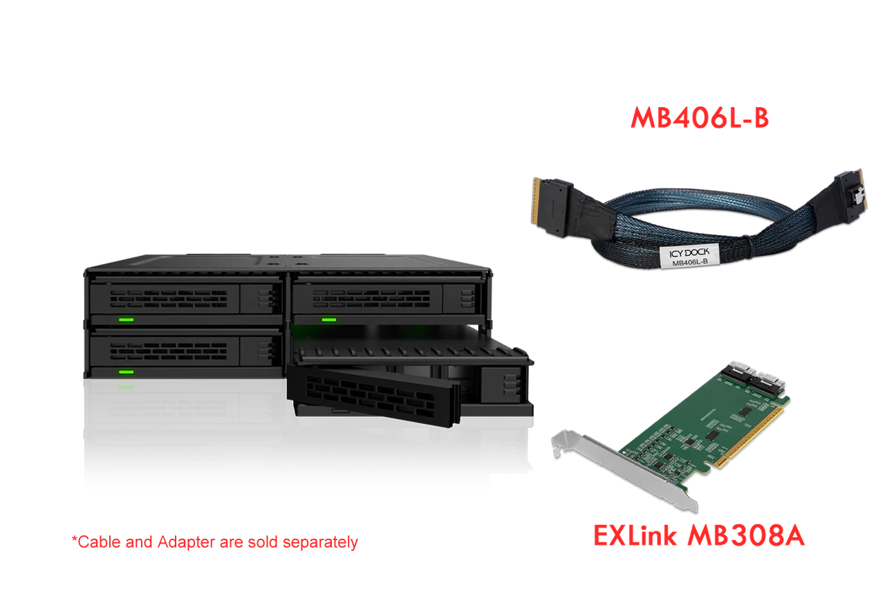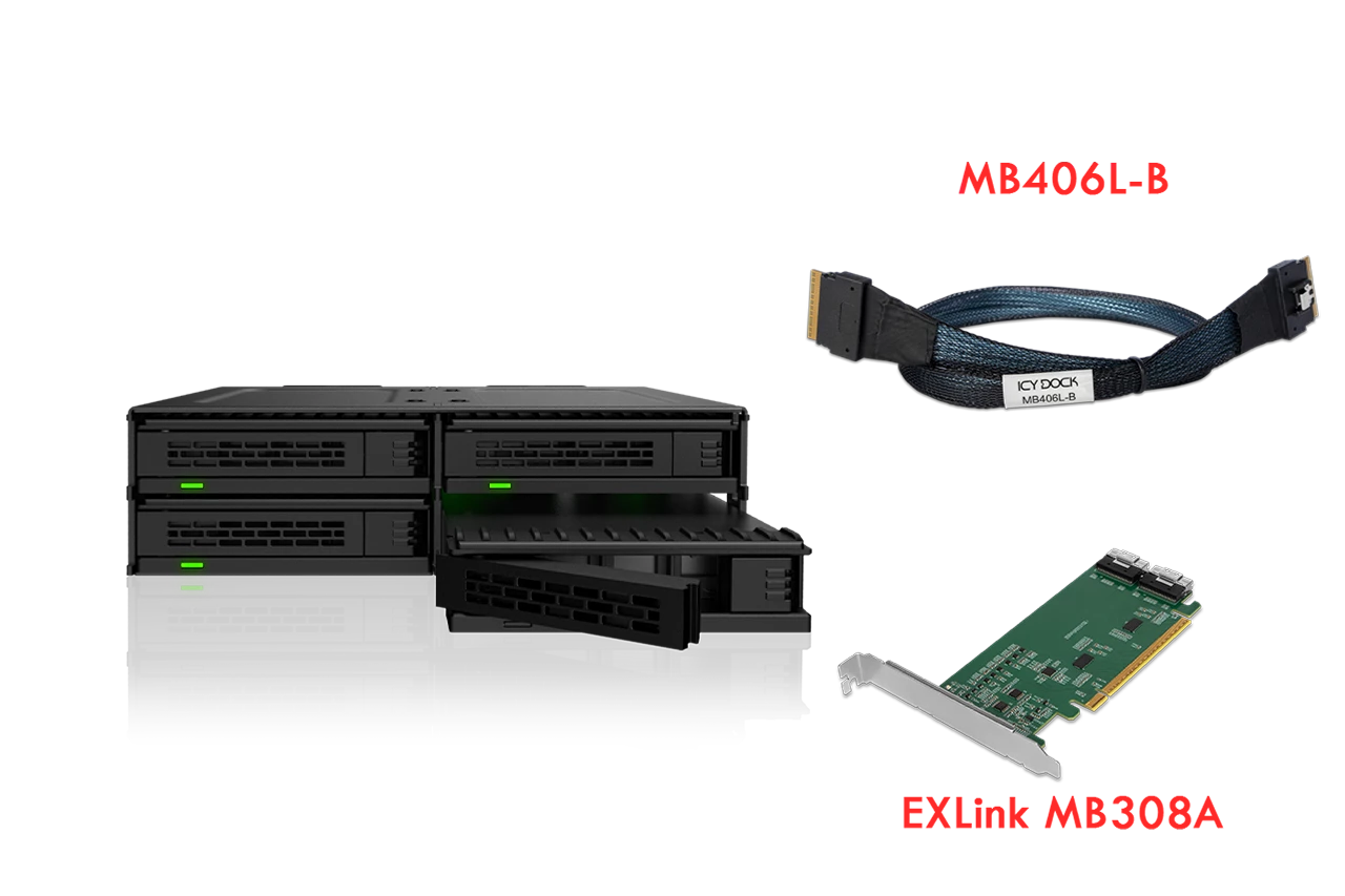 | • | Supports 4 x U.2/U.3 PCIe 4.0 NVMe SSDs (up to 15mm height) in a single 5.25” drive bay |