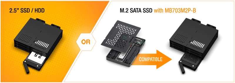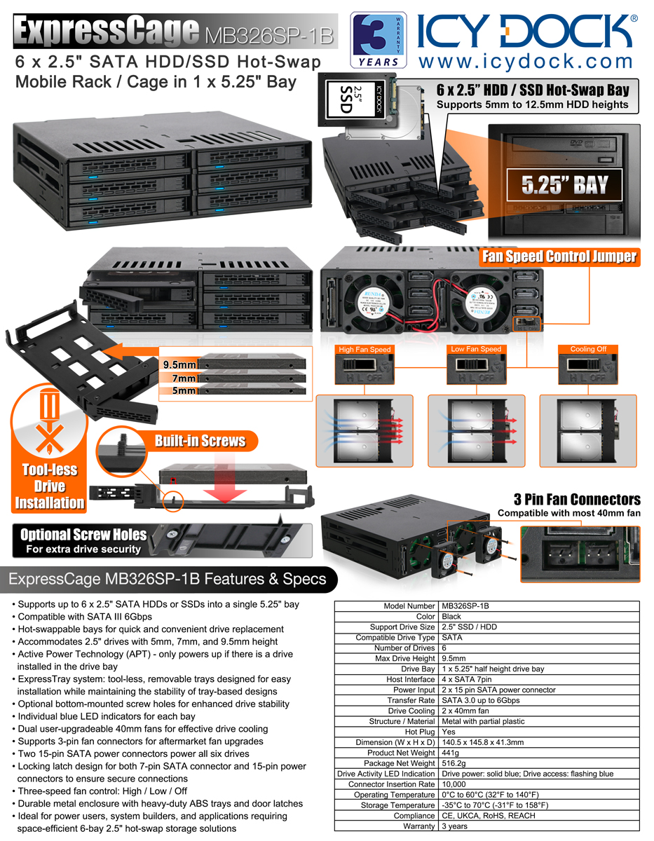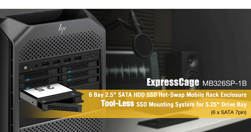Note: The ExpressCage MB326SP-1B does not support SAS HDD/SSD, which also requires 12V power to be operated.