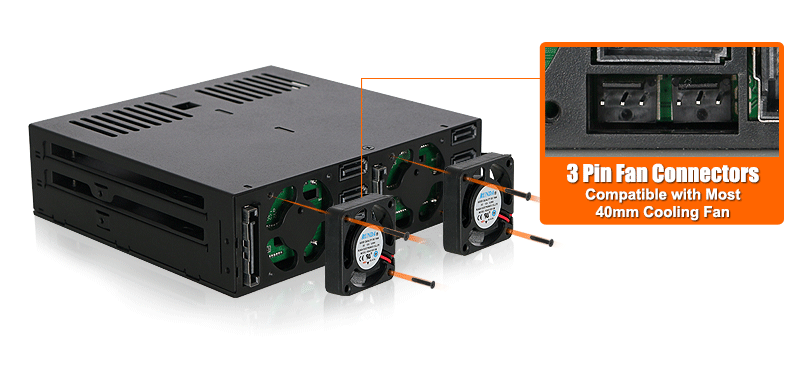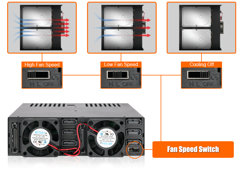 A: The cooling fan we used has been thoroughly tested with the drive enclosure to ensure it functions properly and supports the fan speed control (for select models). Therefore, we suggest our customers keep the original fan for the best result. However, we understand the stock fan may not be suitable for all the applications, so we elected to honor the warranty when 3rd party fan is using. The warranty may void if the 3rd party fan causes electrical damage to the device, though.