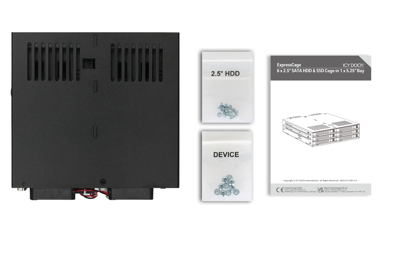 • | Supports up to 6 x 2.5" SATA HDDs or SSDs into a single 5.25" bay |