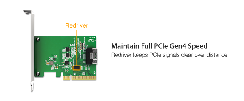 | • | Integrated PCIe Gen4 redriver for enhanced signal integrity over extended traces and cables |