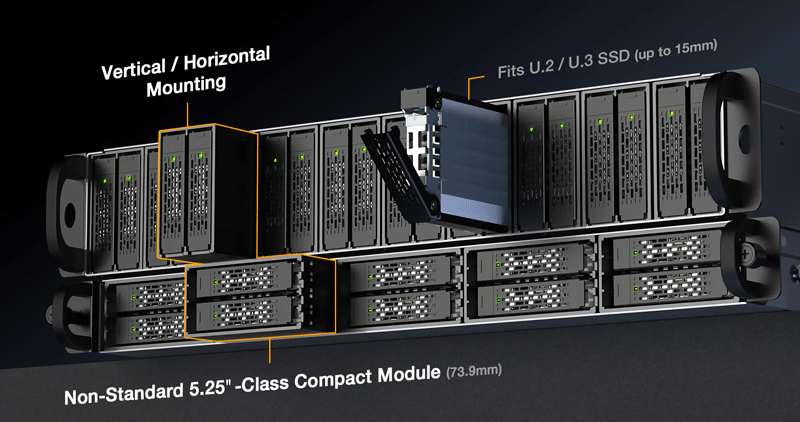 | Support Drive Size: | 2.5" (supports 15mm height U.2/U.3 SSDs) |