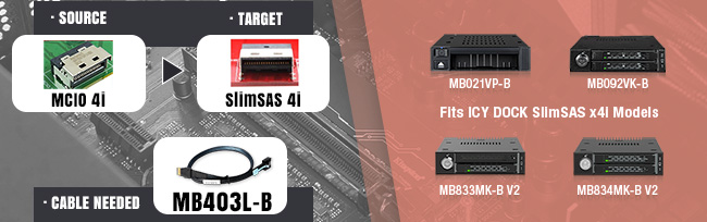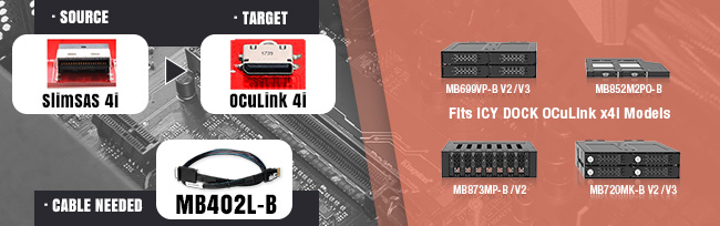 Before delving into the connection process, it's crucial to familiarize yourself with the connectivity options of your PC storage enclosure. Our products primarily utilize common industry-standard interfaces: SlimSAS 8i (SFF-8654), SlimSAS 4i (SFF-8654), OCuLink 4i (SFF-8612), miniSAS HD (SFF-8643) and MCIO (SFF-TA-1016). These interfaces offer high-speed data transfer rates and robust connectivity, ensuring efficient communication between your storage devices and the motherboard.