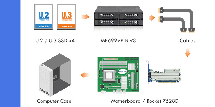 HighPoint Technologies and ICY DOCK strategic partnership leverages state of the art storage technology to deliver powerful and flexible, high-performance NVMe storage expansion solutions for today's most data-intensive applications. The combination of HighPoint's Gen4 x16 NVMe switch adapters with ICY DOCK's mobile racks enable customers to seamlessly integrate enterprise-class NVMe media into their server, workstation and edge computing environments. |